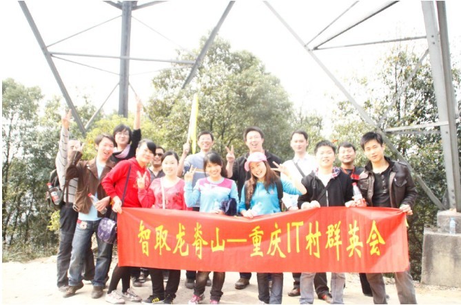 山路闯关益身益智 登山过程中,活动小组安排了很多趣味益智环节。闯关成功一次就会得到活动组委会准备的“胜利之星”标识一枚。三支队伍分别从山脚出发,目的地是学校后山山顶。登山途中,每个队都要经历数次闯关成功才能继续下面的登山任务的闯关。沈教授带领黄队闯过“智力关卡”以及“范围寻宝”,最终用最短的时间第一个到达山顶。待三支队伍齐集龙脊山山顶,“重庆IT村”全体“村民”进行了合影留恋。
