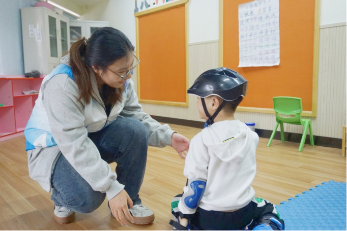 活动前,乐一融合负责人给志愿者们集中科普自闭症的相关知识,指出自闭症需要通过康复训练和长期陪伴来提高自闭症儿童的自理能力和社交能力。在讲解完相关情况后,负责人给志愿者们分配服务内容,分为陪伴孩子和辅助老师两组。陪伴孩子的志愿者们在活动中各司其职,和孩子们共同运动、一起锻炼,在轮滑练习中时刻陪伴,用话语鼓舞他们进步;在孩子们学习写字时耐心讲解,做出正确的示范;当有孩子坐在地上不愿意走路时,小心安抚,倾心交流。志愿者们听从安排,帮助老师们整理孩子的衣物,打扫学校卫生,在劳动实践中感受志愿服务带来的快乐。通过此次活动,孩子们收获了来自志愿者的爱,也锻炼了自理能力。
