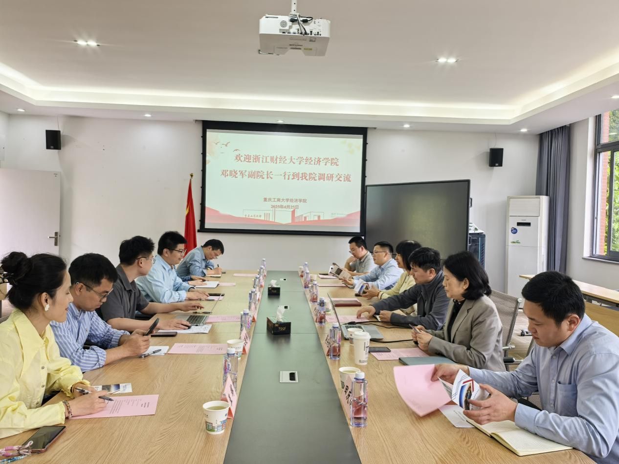 会上,太阳成集团tyc539宋瑛院长代表学院对浙江财经大学太阳成集团tyc539一行的到来表示热烈欢迎,并表达了对此次交流合作的深切期待。宋院长详细介绍了学院的发展定位与战略布局,指出学院当前紧密围绕重庆市西部陆海新通道发展战略进行学科专业与团队建设。近年来,学院在学科专业一体化建设机制上取得显著成效,科研平台负责人与系部专业负责人协同发力,推动经济学专业积极转型。随后,尹元福副院长就学院专业调整优化情况进行了详细介绍,并分享了学院近年来在课程体系构建、特色教材编写、师资团队培养、实践平台搭建以及拔尖学生选拔与培养机制等方面的做法与经验。