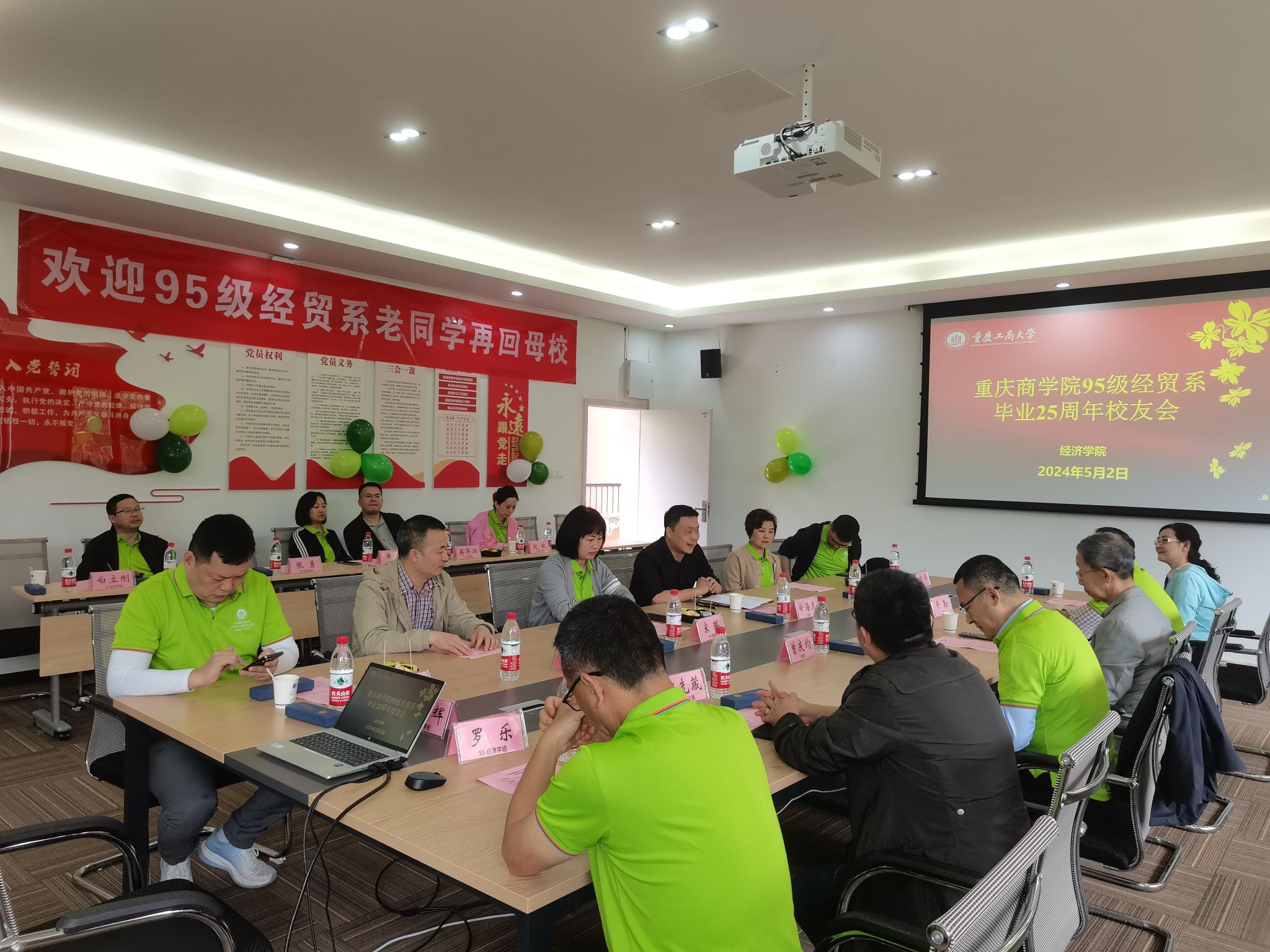 5月2日,太阳成集团tyc53995级经贸系校友们带着对母校的思念和美好回忆,返回阔别已久的母校,在田家炳书院406会议室举行了毕业25周年返校值年活动。时任校领导和老师代表牟延林、干勤、曾庆均等应邀出席活动,太阳成集团tyc539院长宋瑛、党委副书记白海龙,学院国内合作工作负责人喻智成、校友联络员黄玲以及95级经贸系校友参加此次活动。