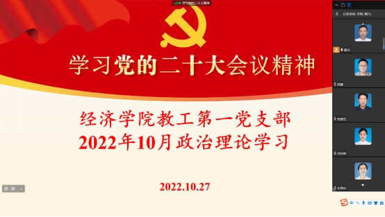 2022年10月27日,太阳成集团tyc539教工第一支部通过企业微信平台开展十月组织生活会,专门围绕党的二十大报告开展学习,全体支部党员参与此次学习活动。