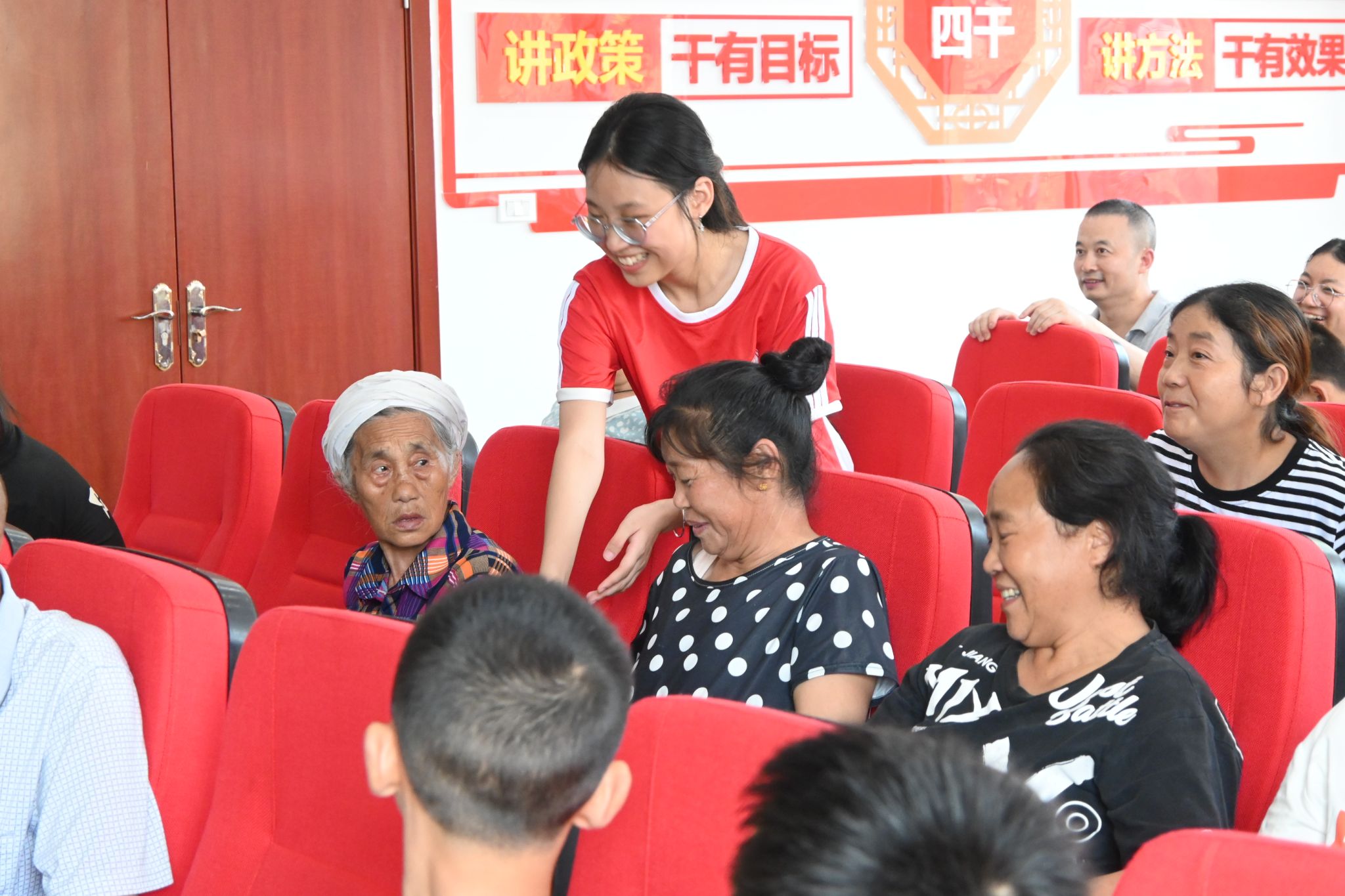 (图为宣讲团分发参会礼品)