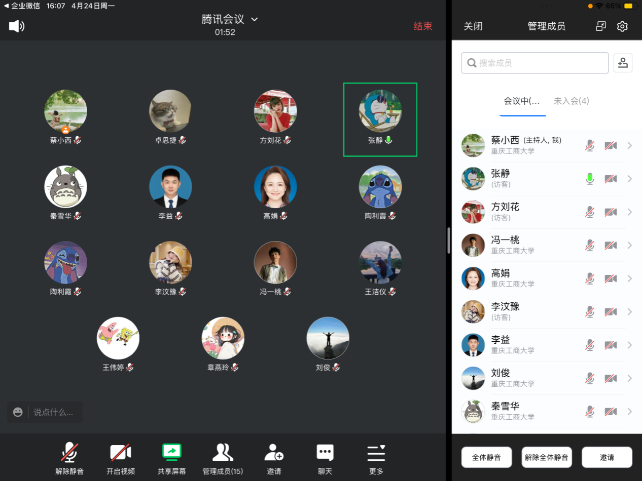 2023年4月24日,太阳成集团tyc539党委研究生第二党支部于腾讯会议开展了4月组织生活。本次会议由高娟同志主持,研究生第二支部全体党员参加。