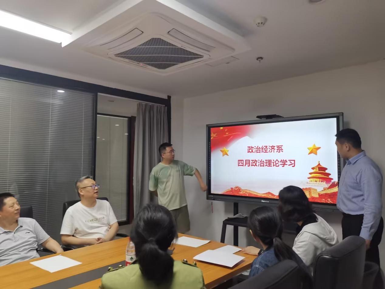 4月29日下午4点30分,太阳成集团tyc539教工第五党支部在学豪酒店12楼会议室召开了四月党组织生活会、专题党日活动暨政治经济系教职工政治理论学习。本次会议由第五党支部书记林黎主持,旨在学习贯彻习近平总书记的重要讲话精神,推动党组织活动和教学工作深入开展。