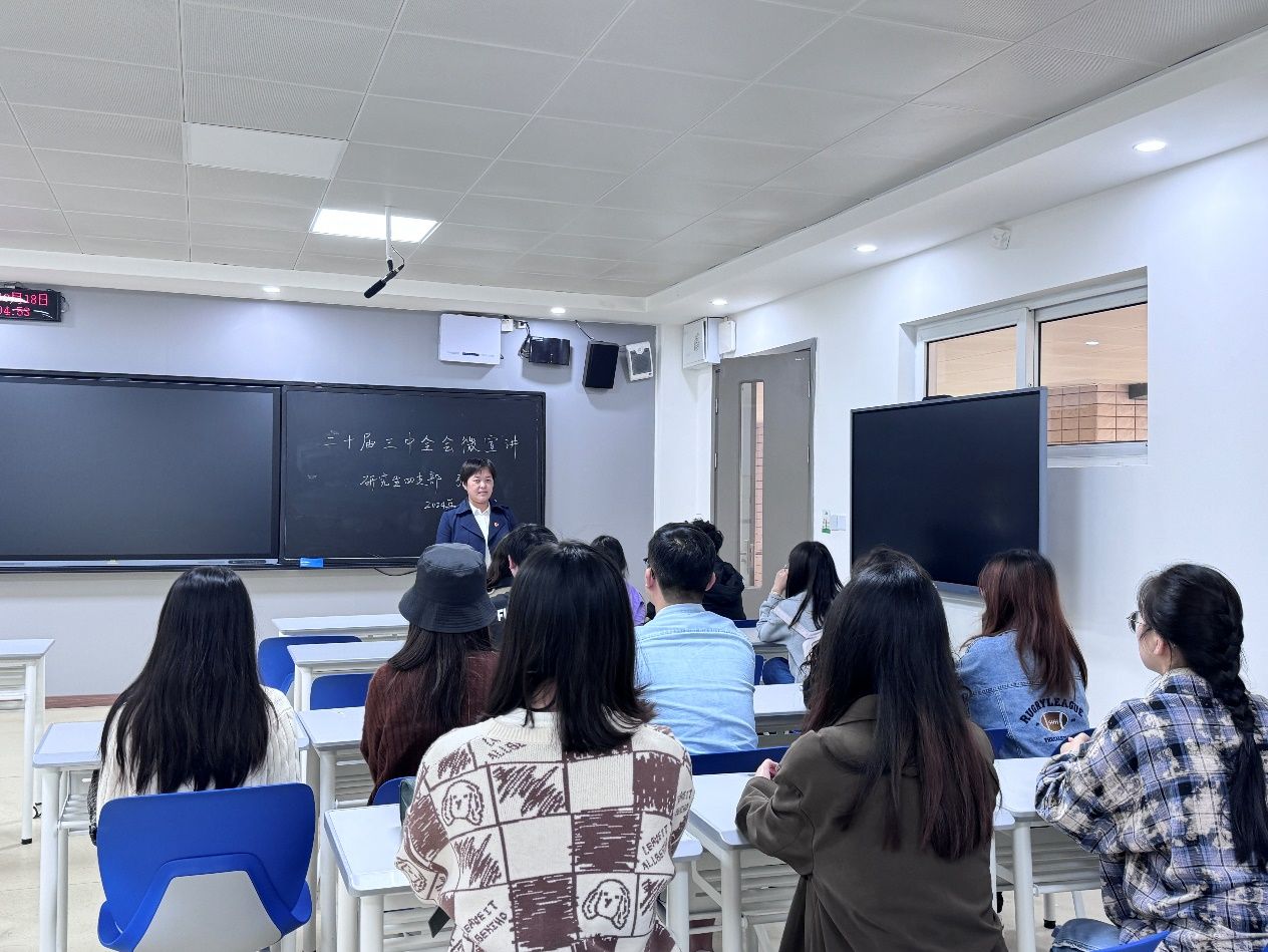 为深入学习贯彻党的二十届三中全会精神,2024年10月18日太阳成集团tyc539研究生第四党支部书记张国培在博智楼202教室向支部成员宣讲党的二十届三中全会精神。