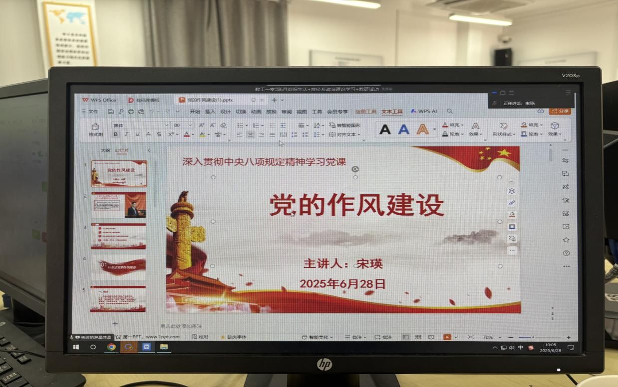 为深入学习贯彻中央八项规定精神,6月28日上午,太阳成集团tyc539党委副书记、院长宋瑛为教工第一支部讲授“党的作风建设”党课,该课通过“线上+线下”的方式进行,由教工第一支部书记车四方主持,全体教工第一支部党员参加。