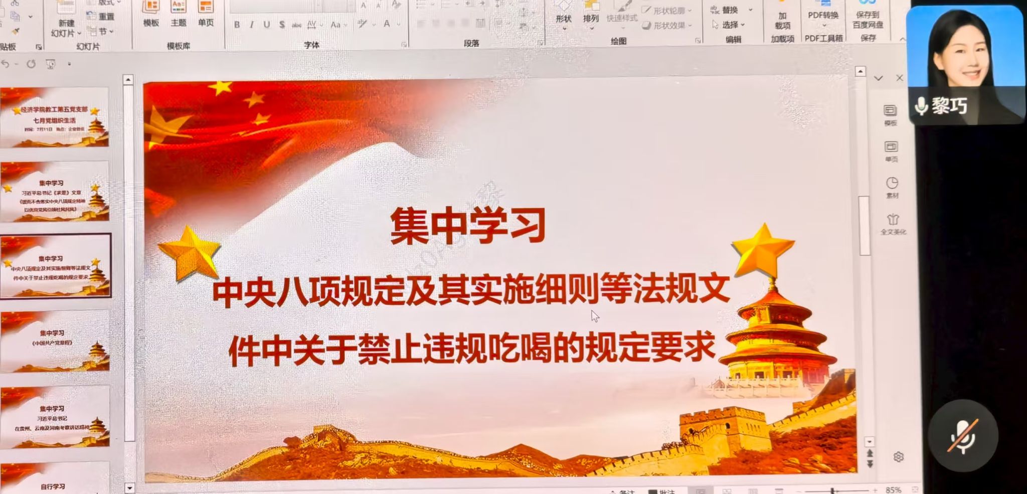 教工第五支部书记林黎总结提出在临近暑假放假的7月,开展“深入贯彻中央八项规定精神学习教育”,尤其是深入了解中央八项规定及其实施细则等法规文件中关于禁止违规吃喝的规定要求,对于假期违规吃喝的防微杜渐具有重要警示教育意义。同时,深入贯彻中央八项规定精神是对每一个党员的基本要求,禁止违规吃喝的规定要求是建立在《中国共产党章程》基础上,在“中国共产党建党104周年纪念”的7月,组织学习《中国共产党章程》,提醒支部党员时刻将党章党纪铭记于心,付诸于行。