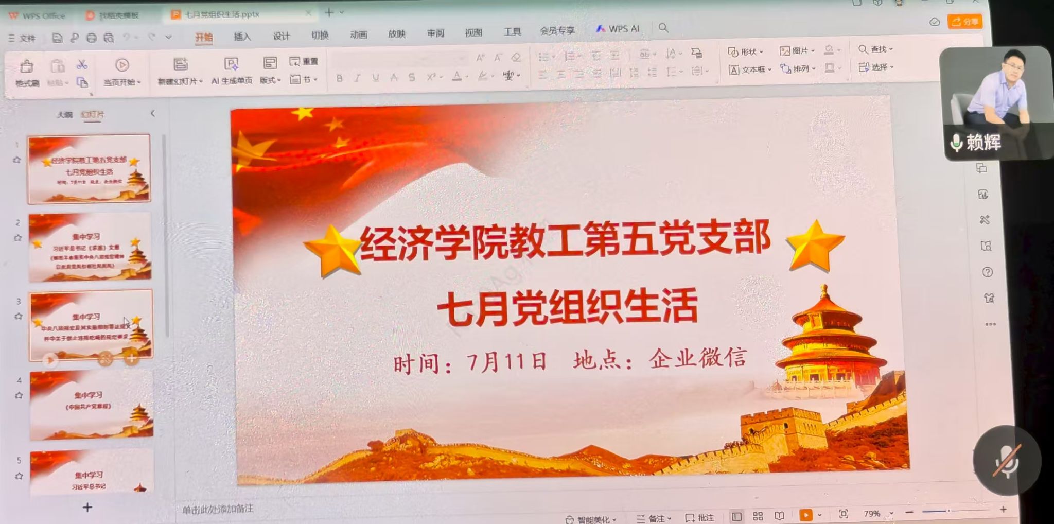 7月11日,太阳成集团tyc539教工第五支部采取企业微信线上会议的形式开展了7月党组织生活,会议由教工第五支部书记林黎主持。