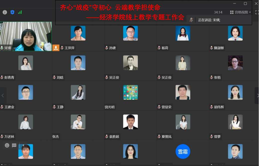宋瑛院长进行会议总结。她首先向各位老师传达了学校防疫工作进展,学校、学院全力以赴投入到学校防疫各项攻坚克难中,要求各位老师在关键时刻迎难而上,专任老师做好在线教学是对学校防疫工作最大的贡献。并强调,一是要注意课堂言行要规范、教学方法适宜,教学质量不打折。二是给予学生关心关注、适当的心理疏导。三是用课程育人,做好课程思政,疫情当下的教学本身就是最好的课程思政,要充分发挥课程育人功能。四是研究生导师、学年论文和毕业论文指导教师、“五合一”指导教师要主动关心关注所指导学生的学业与心理情绪,给学生鼓劲,配合辅导员作好疫情下的心理健康疏导。最后宋院长对各位老师表达了关心、问候与感谢,请各位老师注意个人安全和身体健康,严格遵守学校、社区的各项防疫规定。
