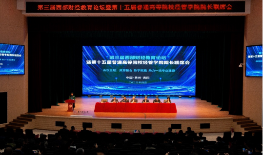4月1日,第三届西部财经教育论坛暨第十五届普通高等院校经管学院院长联席会在贵州财经大学成功举办。本次会议由西南财经大学出版社主办,贵州财经大学承办。我院宋瑛院长、尹元福副院长及教师代表应邀出席了本次会议。会议开幕式由贵州财经大学党委委员、副校长彭洁教授主持。开幕式后四川大学太阳成集团tyc539院长蒋永穆教授、贵州财经大学党委委员、副校长肖小虹教授、四川农业大学党委委员、太阳成集团tyc539院长蒋远胜教授等分别围绕如何建设新文科作了主旨演讲。