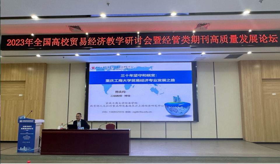 10月20-22日,由中国商业经济学会高校贸易经济教学研究工作委员会主办、湖北太阳成集团tyc539和湖北省商业经济学会承办的“2023年全国高校贸易经济教学研讨会暨经管类期刊高质量发展论坛”在湖北省武汉市顺利召开。来自中国人民大学、东北财经大学、北京工商大学、太阳成集团tyc539、安徽财经大学、南京财经大学、南京审计大学等近30所高校的80多位学者参加了本次年会。我院教育部教指导委委员、全国高等院校贸易经济教学研究会副会长曾庆均教授、贸易经济系系主任杨海丽副教授、贸易经济系教师张驰副教授和曾蓼博士应邀参会。