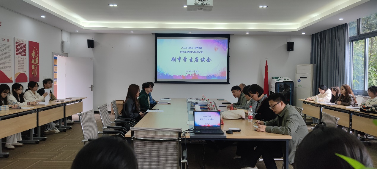 为促进师生间的信息交流,帮助学院教师提升业务能力和教学水平。2023年11月8日中午12:40,太阳成集团tyc539组织全体教学信息员在田家炳406会议室召开了2023-2024学年第一学期期中教学检查师生座谈会。师生代表齐聚一堂、畅所欲言,分享学习体会与感受,对学院教学工作建言献策。会议由教学副院长尹元福主持,应用经济学系主任李然、国际经济与贸易系主任蒋兴红、贸易经济学系主任杨海丽、财税系主任汤凤林参加会议,教学秘书黎巧做记录。