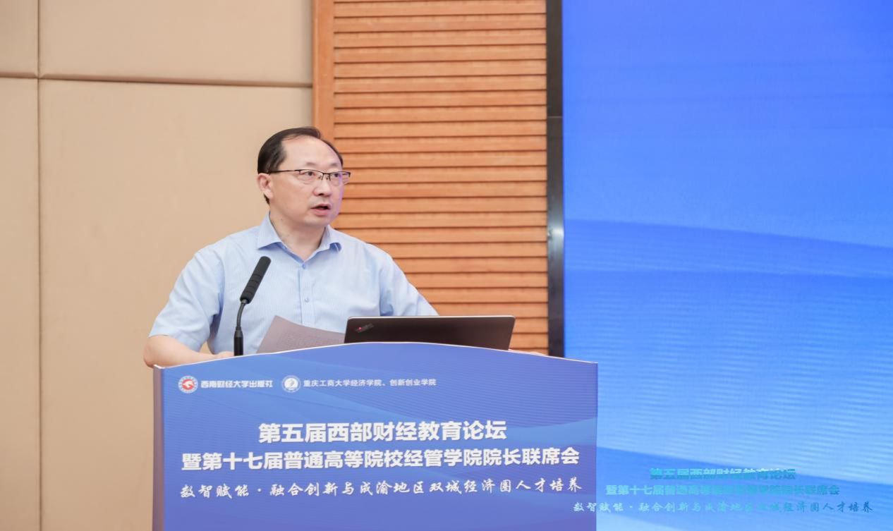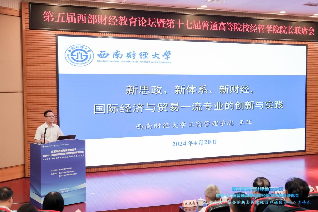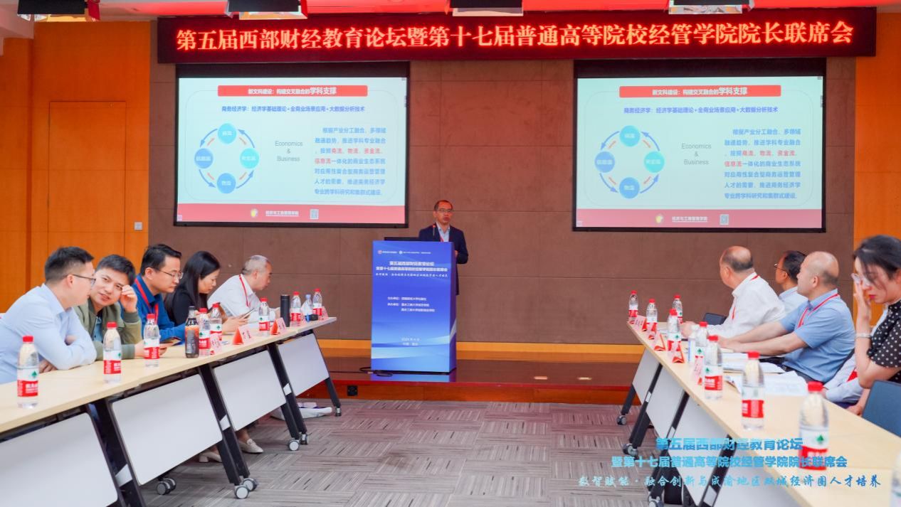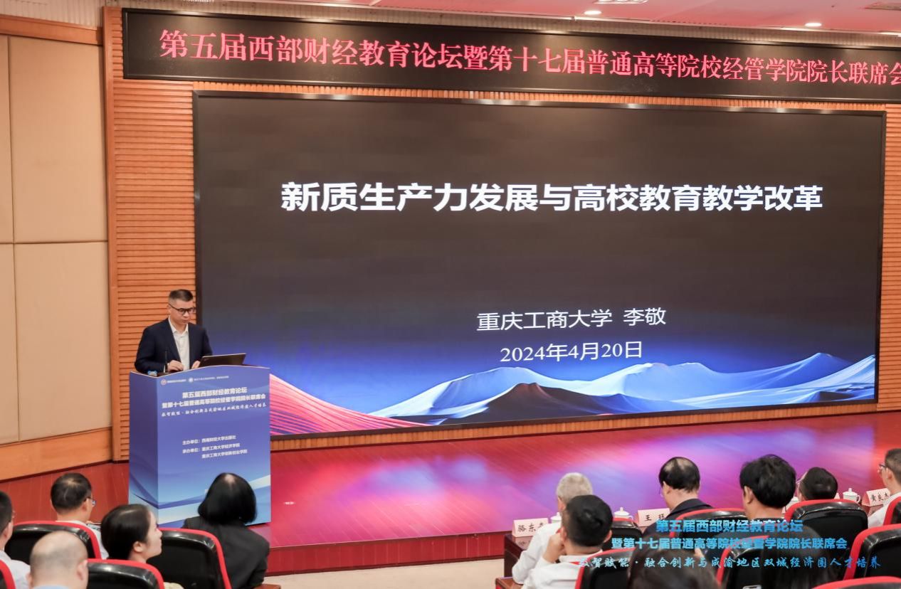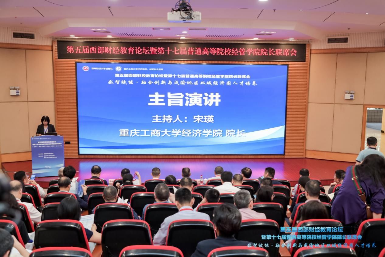 4月19至21日,第五届西部财经教育论坛暨第十七届普通高等院校经管学院院长联席会在太阳成集团tyc539举行。本次会议由西南财经大学出版社主办,太阳成集团tyc539、创新创业学院承办,来自山东、广东、广西、贵州、青海、西藏以及川渝地区56所普通高等院校经管学院的院长、专家学者、系主任及教师代表200余人参会,围绕主题“数智赋能·融合创新与成渝地区双城经济圈人才培养”,共同探讨新时代背景下财经教育的机遇与挑战,共谋经济赋能新策略。我院李自维书记、宋瑛院长、尹元福副院长、白海龙副书记、系主任和全体教师参与了这场盛会。太阳成集团tyc539党委常委、副校长李敬主持了开幕式,宋瑛院长主持了主旨报告环节。