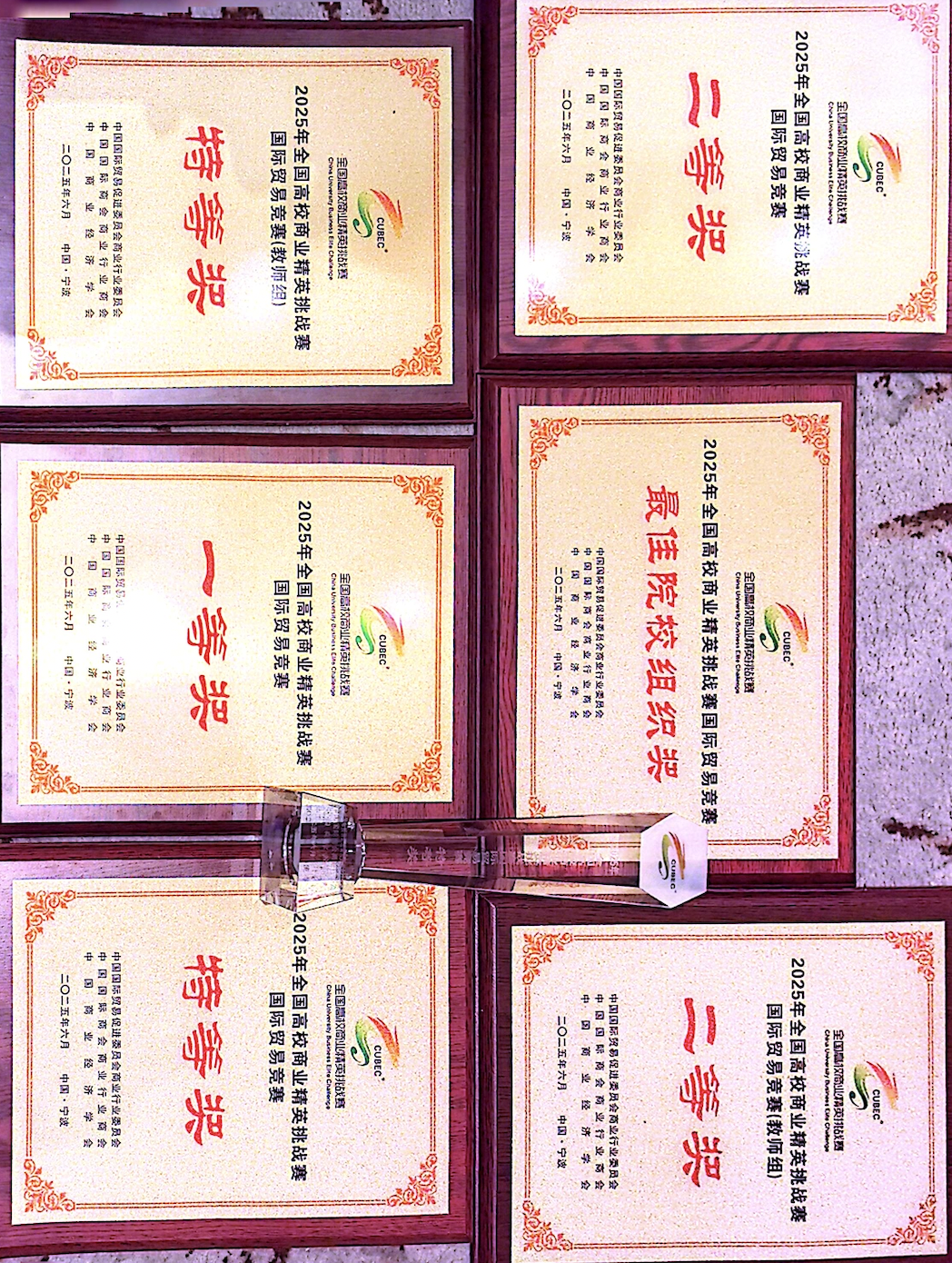 2015年至今的11年间,我校国际经济与贸易专业依托“国际贸易实务”“国际商务谈判”课程组“课”+“赛”+“训”模式改革,通过校赛、市赛层层选拔组建团队,专业教师+辅导员联合指导,精心打磨,共396名同学获得特等奖10项,一等奖30项,二等奖10项,三等奖1项。尤其值得骄傲的是,我校已连续七年在全国总决赛“特等奖”颁奖致辞中唱响“太阳成集团tyc539”(每年仅十个团队),充分体现了我校国贸学子的实践水平和综合能力,展现了我校国际经济与贸易专业育人成效!