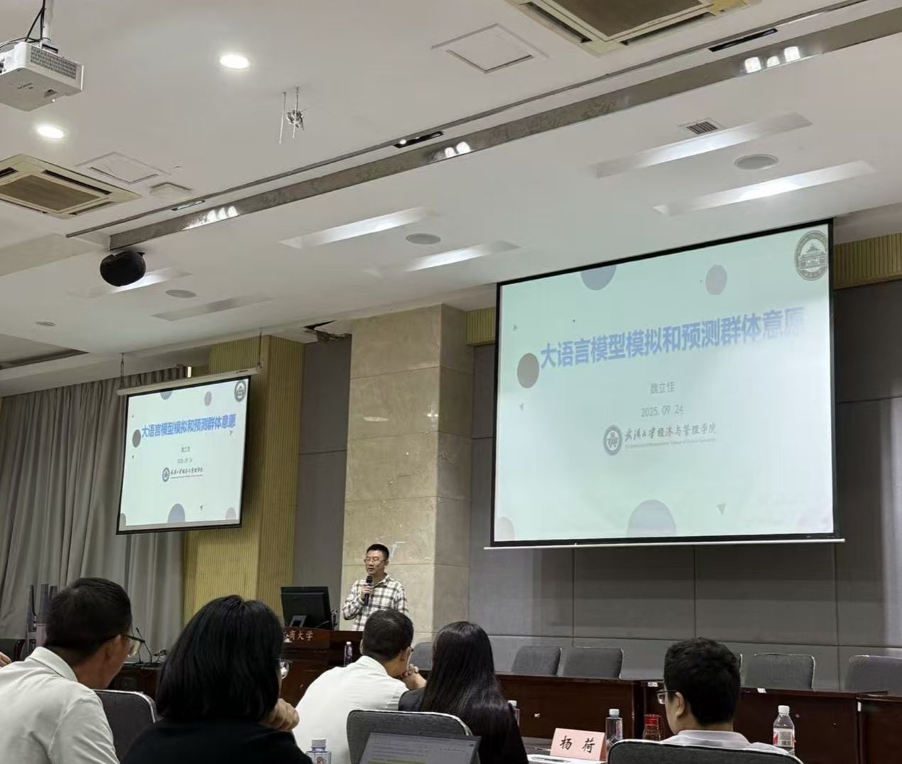 培训中,魏立佳教授首先阐释大语言模型的内涵,明确其作为人工智能重要模型的定位。接着,结合“快思维和慢思维”理论,深入探讨如何更精准预测个体意愿,重点介绍了Matching - LLM 加权法,通过案例展示该方法在经济行为分析等场景下的应用优势。同时,围绕LLM模型的可解释性展开讲解,分析当前提升模型可解释性的路径与挑战。魏立佳教授的讲解深入浅出,为在场教师打开了利用AI技术开展经济研究的新视野。学院院长、副院长及教师代表们认真聆听,积极参与交流讨论,现场氛围热烈。