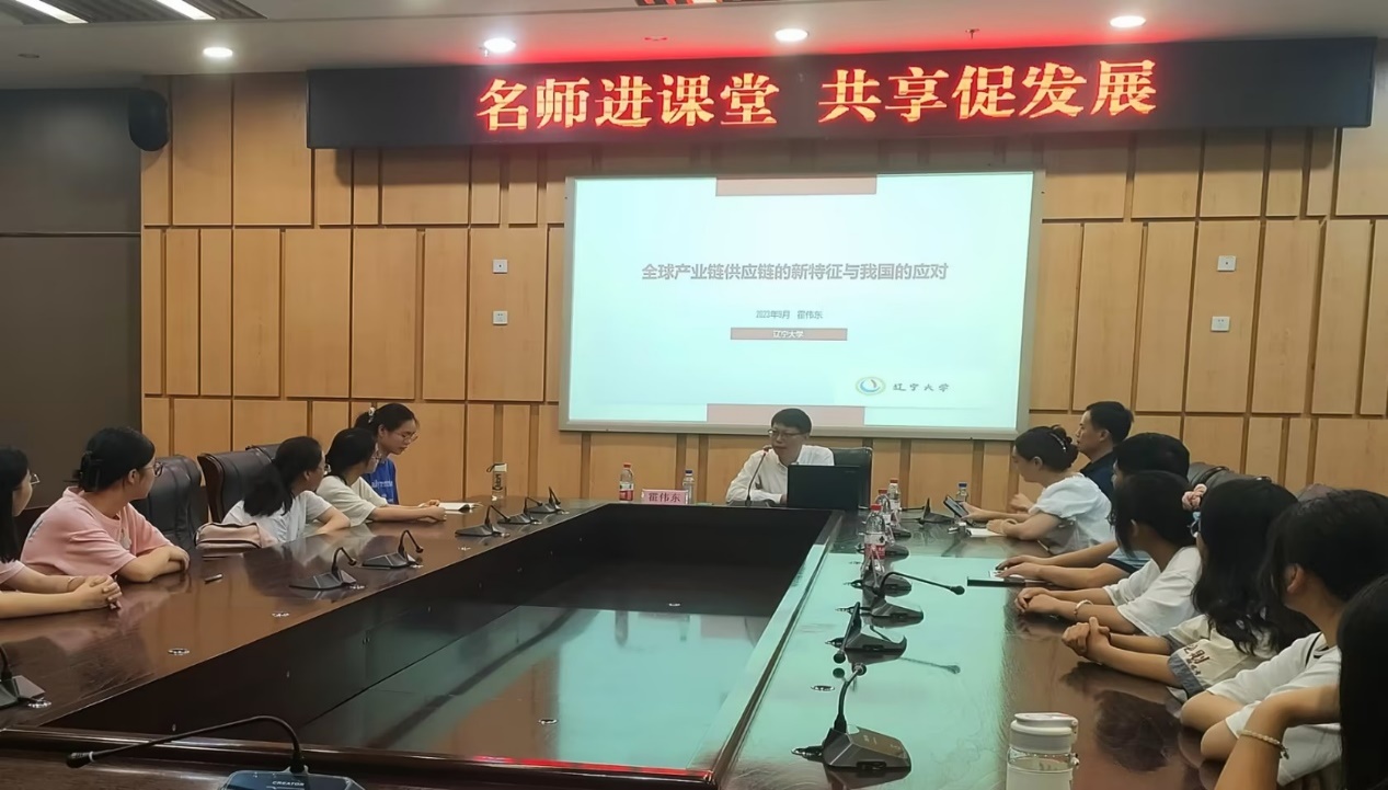 2023年9月11日上午,辽宁大学霍伟东教授应邀来我校给22、23级经济学实验班和23级国贸实验班部分学生作经济学拔尖人才示范基地学术名师系列讲座。霍伟东教授是经济学博士、教授、博士生导师,教育部教学指导委员会委员,国家文化贸易学术研究平台专家,四川省学术和技术带头人,现任辽宁大学经济学部副主任,曾两次获得“刘诗白经济学奖”。