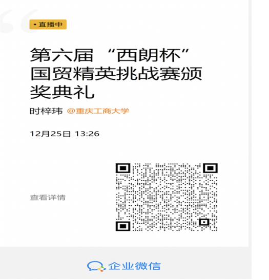 颁奖典礼上,由于带领团队外出学习而未能出席大赛的大赛赞助商、我校国贸专业实践教学基地——重庆西朗进出口贸易有限公司创始人刘丹、粟小亚和黄师傅通过短视频表达了对参赛同学的祝福。