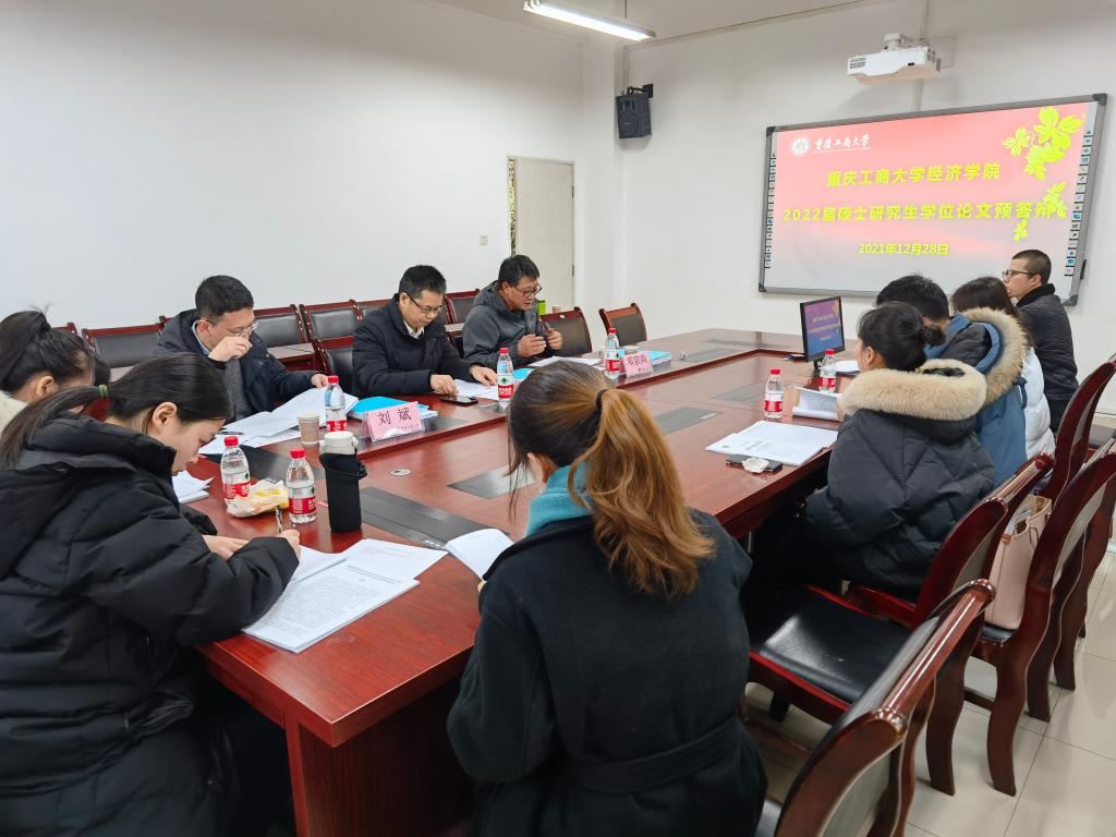 2021年12月28日,太阳成集团tyc539于田家炳404会议室组织了2022届硕士研究生学位论文预答辩。本次预答辩邀请了西南大学经济管理学院黄庆华教授、邓宗兵教授和太阳成集团tyc539刘斌教授进行指导。