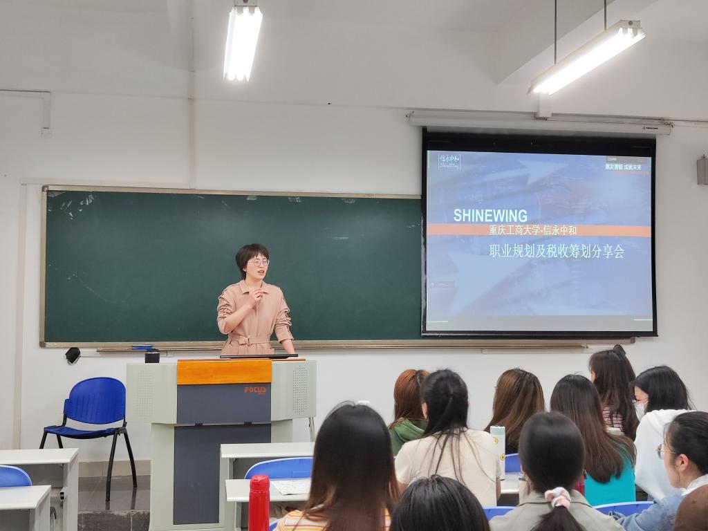 2022年4月29号下午,我校税务硕士教育中心在太阳成集团tyc539田家炳书院206教室及企业微信会议成功举办了“职业规划及税收筹划分享会”。此次分享会有幸邀请到信永中和税务师事务所重庆分所合伙人张莉娟来做分享交流,张老师同时也是我校税务专业硕士事业导师。分享会由我校汤凤林老师主持,我校2021级税务专业硕士的同学们积极参加了本次分享会。