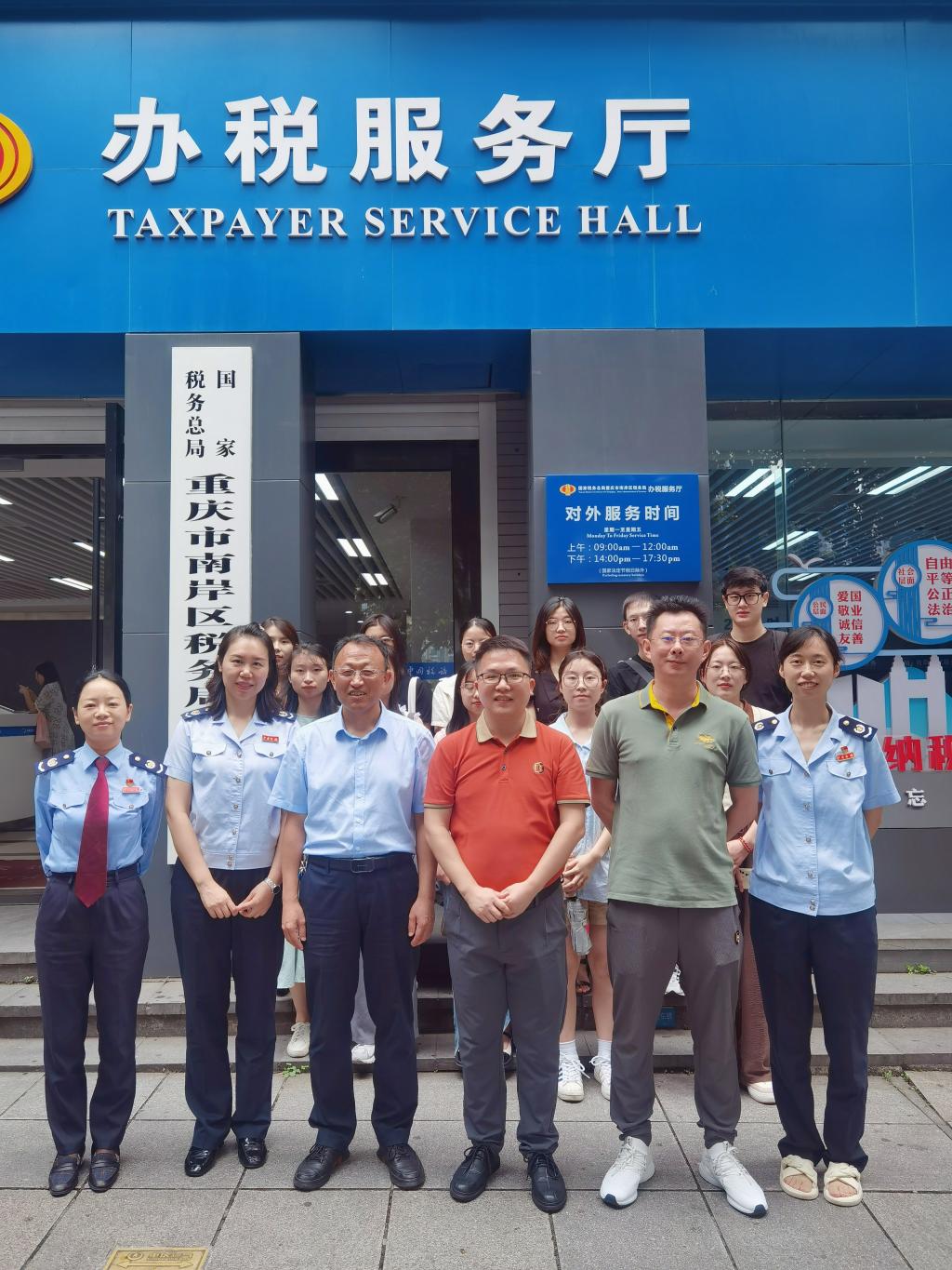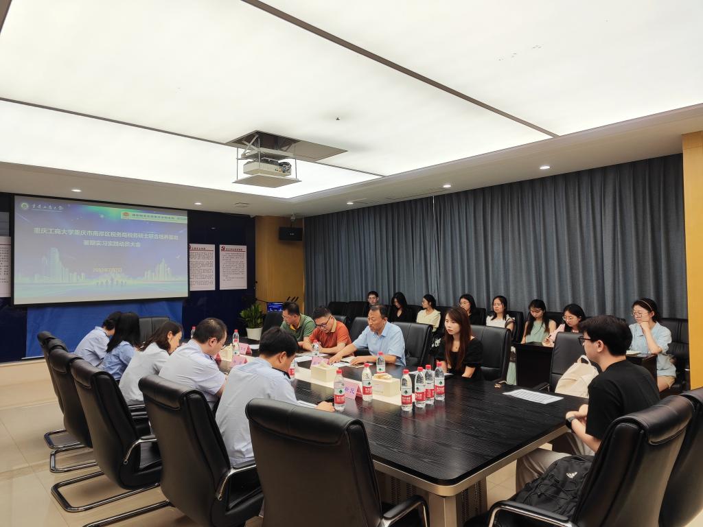 为了强化税务硕士研究生专业实践能力的培养,2023年7月7日上午,我校税务硕士教育中心联合国家税务总局重庆市南岸区税务局召开了2022级税务硕士研究生暑期实习实践动员大会。重庆市南岸区税务局纳税服务科科长林泉、税收风险控制科科长吴月、所得税科科长吴婷、第一税务所所长夏令、房地产税征收所所长谢新民,重庆市南岸区税务学会副会长肖智斌,太阳成集团tyc539教务处副处长黄潇教授、太阳成集团tyc539尚可文教授,以及参加实习的12位税务专硕同学参加了动员会。