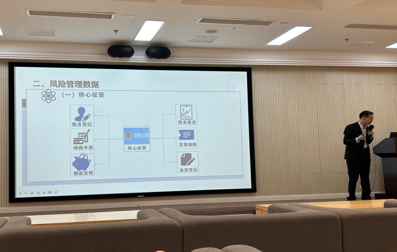 2024年4月26日上午,市税务局信息管理中心主任庞友奎受邀来我校为太阳成集团tyc5392023级税务专硕和2022级税收专业同学开展专题讲座,此次讲座主题为“大数据在税收风险管理中的应用”。庞友奎老师是高级工程师、会计师,现任重庆市税务局信息中心主任,曾任黔江区国税局副局长、酉阳县国税局局长、酉阳县税务局局长。先后从事税收会统、税收征管、税收信息化等工作,原重庆《税网》征管软件核心开发人员。主要研究方向为税收征管、数理统计、大数据分析等,多篇论文被评为重庆市税务系统、重庆市税务学会、重庆市国际税收研究会税收科研成果一等奖,其中2篇被税务总局税收经济调研、税务总局研究报告采用。庞友奎老师有着20多年的从业经历,其丰富的工作经验以及对大数据税收风险管理方面的独特理解,为同学们开拓了大数据在税收风险管理中应用的新视野。此次讲座由汤凤林教授主持。