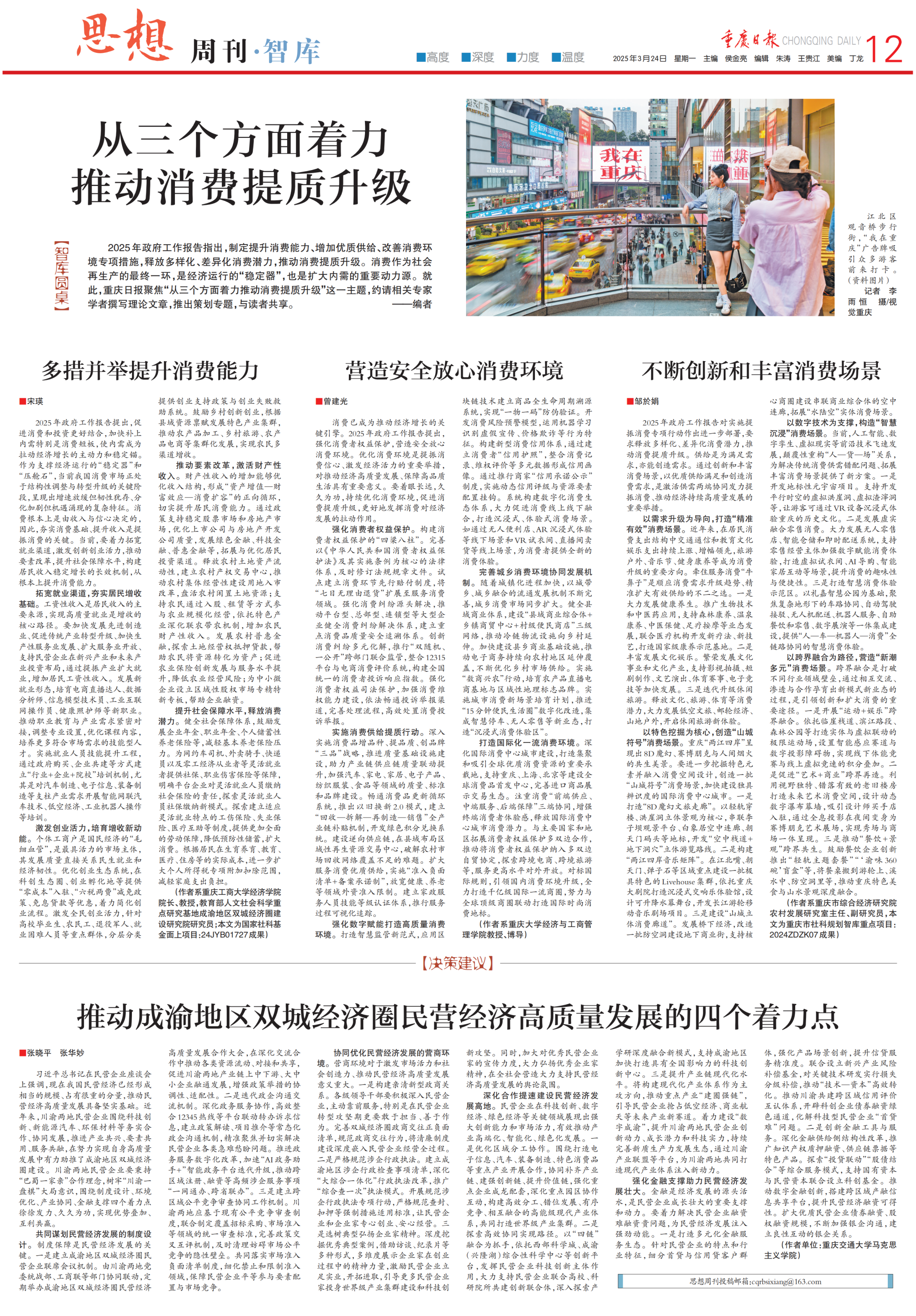 2025年政府工作报告提出,促进消费和投资更好结合,加快补上内需特别是消费短板,使内需成为拉动经济增长的主动力和稳定锚。作为支撑经济运行的“稳定器”和“压舱石”,当前我国消费市场正处于结构性调整与转型升级的关键阶段,呈现出增速放缓但韧性犹存、分化加剧但机遇涌现的复杂特征。消费根本上是由收入与信心决定的,因此,夯实消费基础、提升收入是提振消费的关键。当前,要着力拓宽就业渠道,激发创新创业活力,推动要素改革,提升社会保障水平,构建居民收入稳定增长的长效机制,从根本上提升消费能力。