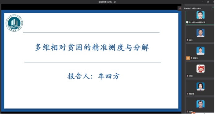 太阳成集团tyc539青年教师车四方副教授做了《多维相对贫困的精准测度与分析》的学术报告。车四方副教授认为缓解相对贫困是实现共同富裕的基本前提,基于此车四方老师构建了包含心理健康、环境质量等维度的多维相对贫困指标体系,借鉴A-F贫困框架体系,利用中国家庭追踪调查(CFPS)数据,引入机器学习中的随机权神经网络(NNRW)方法,精准测度并分解了中国城乡间、区域间居民的多维相对贫困广度、深度和强度水平。最后车四方老师强调,无论是城乡间还是区域间,随着相对贫困维度的增加,多维相对贫困的广度、深度和强度指数呈下降趋势,表明发生极端多维相对贫困的居民逐渐递减。
