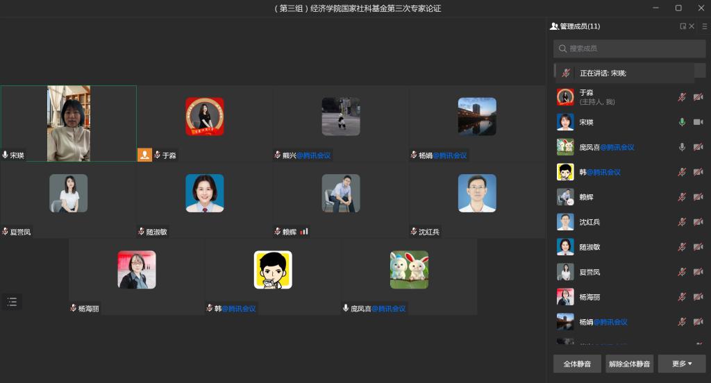 论证结束后,宋瑛院长做总结发言,感谢三位专家对我院科研工作的支持,并希望所有申报教师认真消化吸收专家意见,在寒假期间进一步打磨、完善申请书,持续推进国家社科基金申报工作。