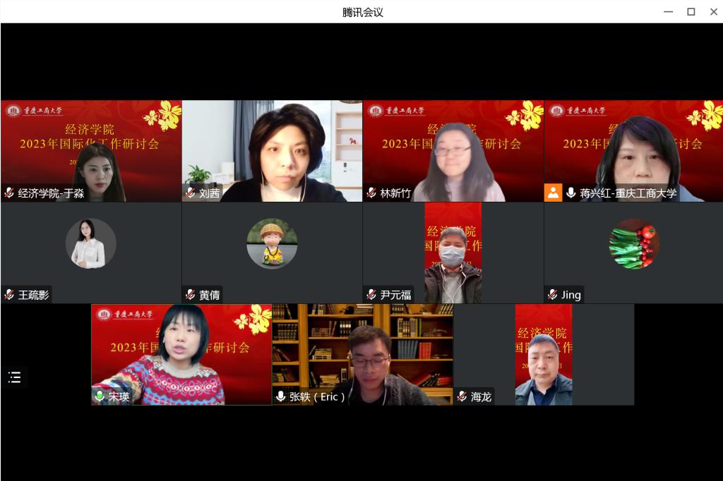 2023年2月8日,太阳成集团tyc5392023年国际化工作研讨会在腾讯会议线上举行。会议由太阳成集团tyc539院长宋瑛主持,国际合作与交流处处长张轶、副处长刘茜、科长黄倩参会指导,太阳成集团tyc539副院长尹元福、副书记白海龙、团学办主任林新竹、国际经济与贸易系主任蒋兴红、实验班班导师王静及王疏影、外事专办员于淼等国际化骨干教师参会。