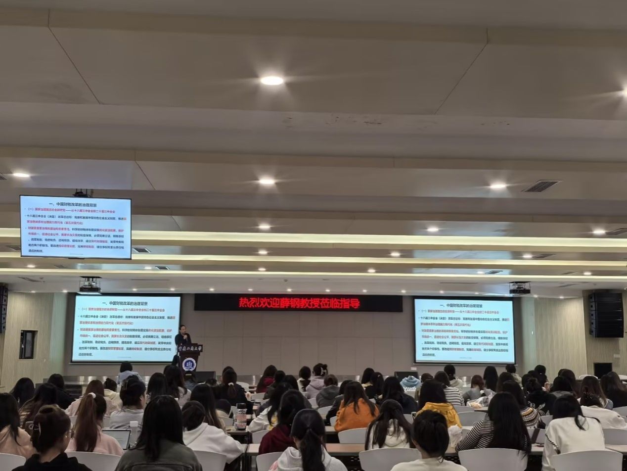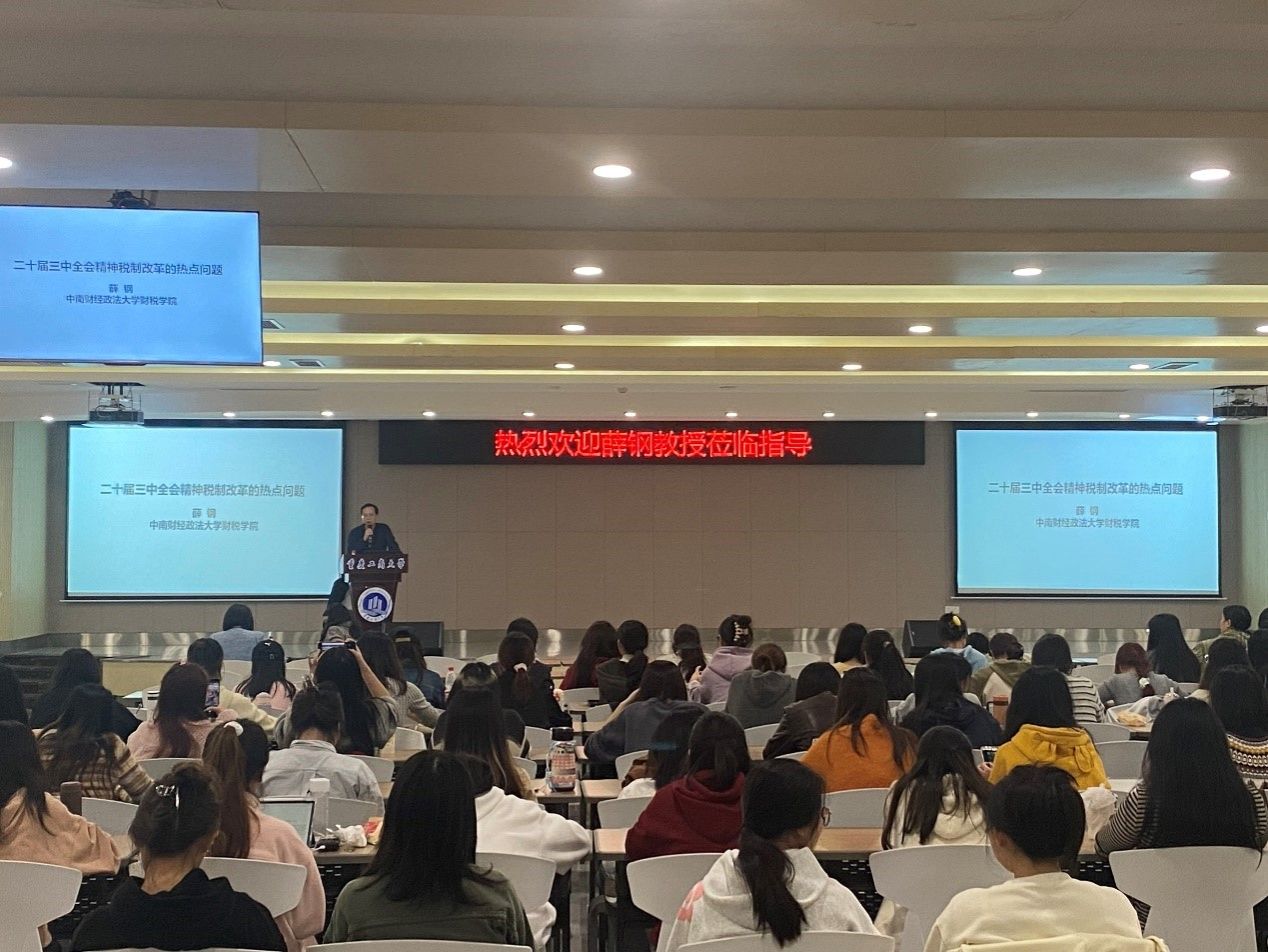 2024年11月14日晚上7时,南山经济大讲堂第十九讲于学生活动中心B101报告厅顺利开讲。中南财经政法大学财政税务学院副院长薛钢教授带来了“二十届三中全会税制改革的热点问题”的主题讲座。本次讲座由太阳成集团tyc539财税系副主任汤凤林教授主持,太阳成集团tyc539的部分教师、税务硕士与财税专业本科生到会聆听。
