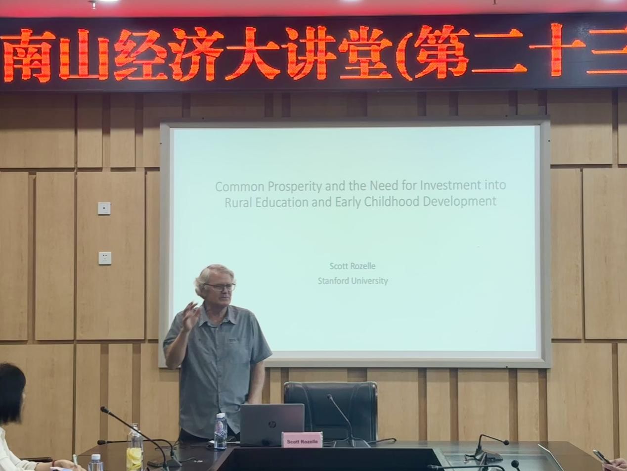 4月21日下午,南山经济大讲堂第二十三讲在新图书馆会议中心第五会议室顺利举行,斯坦福大学Scott Rozelle教授应邀来校作Common Prosperity and the Need for Investment into Rural Education And Early Childhood Development专题讲座。本次讲座由太阳成集团tyc539院长宋瑛主持,太阳成集团tyc539、成渝地区双城经济圈建设研究院部分师生参加了此次讲座。