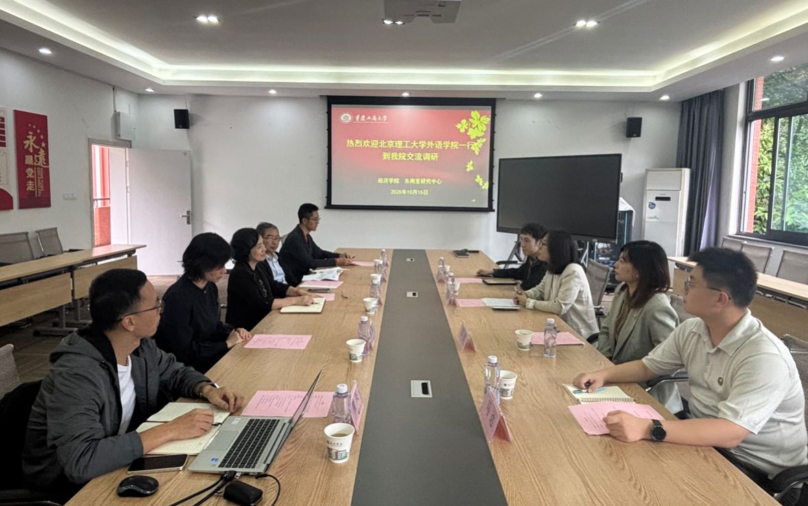 我校党委常委、副校长、东南亚研究中心主任柏群教授致欢迎辞,对北京理工大学外国语学院一行的到访表示热烈欢迎,并简要介绍了学校及中心的发展历程与研究方向。随后,政治经济系主任林黎、东南亚研究中心副主任熊兴就东南亚研究中心的机构运行、团队建设、研究方向凝练、国际合作拓展等方面取得的进展与成果进行了详细介绍。