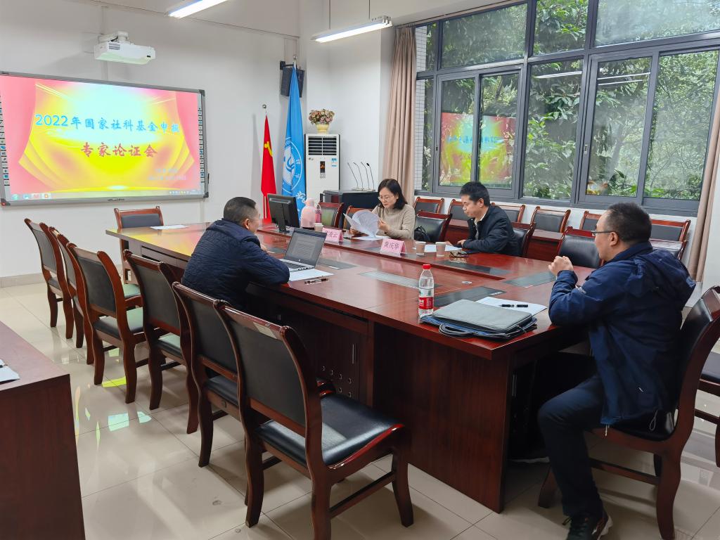 2021年12月15日,太阳成集团tyc539在田家炳50404会议室召开了2022年国家社科基金项目申报论证会。本次论证会特邀重庆大学黄凌云教授、西南大学黄庆华教授两位专家进行指导,学院近30位老师参与了论证。
