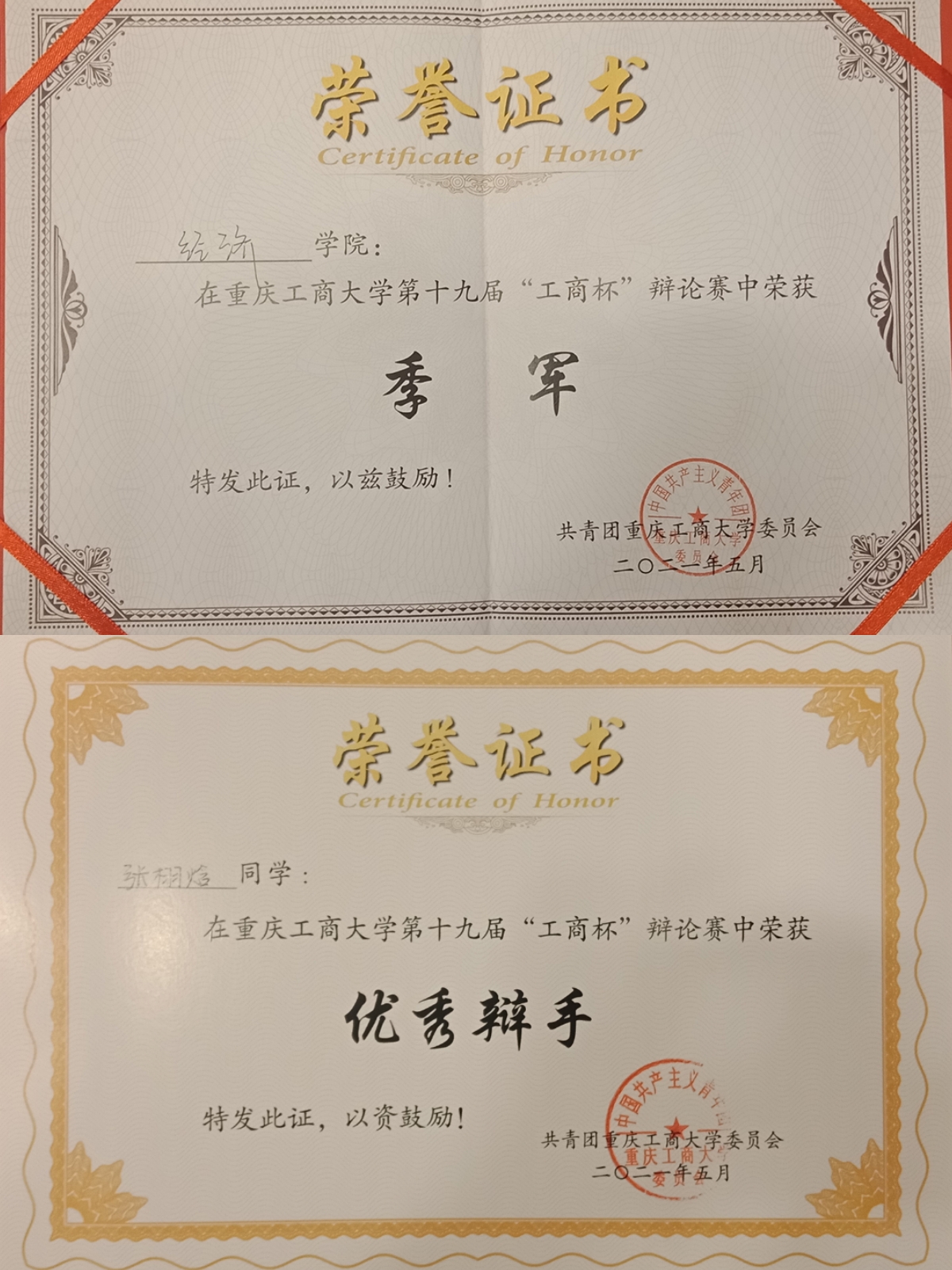 据悉,本次比赛长达半年有余,太阳成集团tyc539共派出70余人,共计组成五支队伍参加五项比赛。在各项比赛中,太阳成集团tyc539学子团结一心,顽强拼搏,努力奋斗,向大家展现了一场又一场球场上的精彩角逐,辩论场上思维的精彩碰撞。最终在本次工商杯相关比赛中实现体育成绩和精神文明的双丰收!