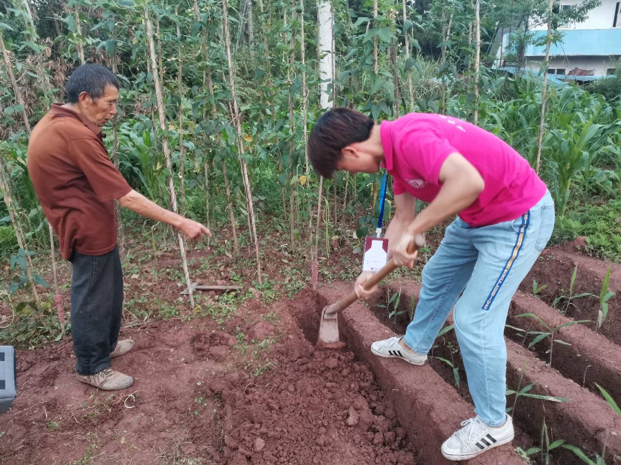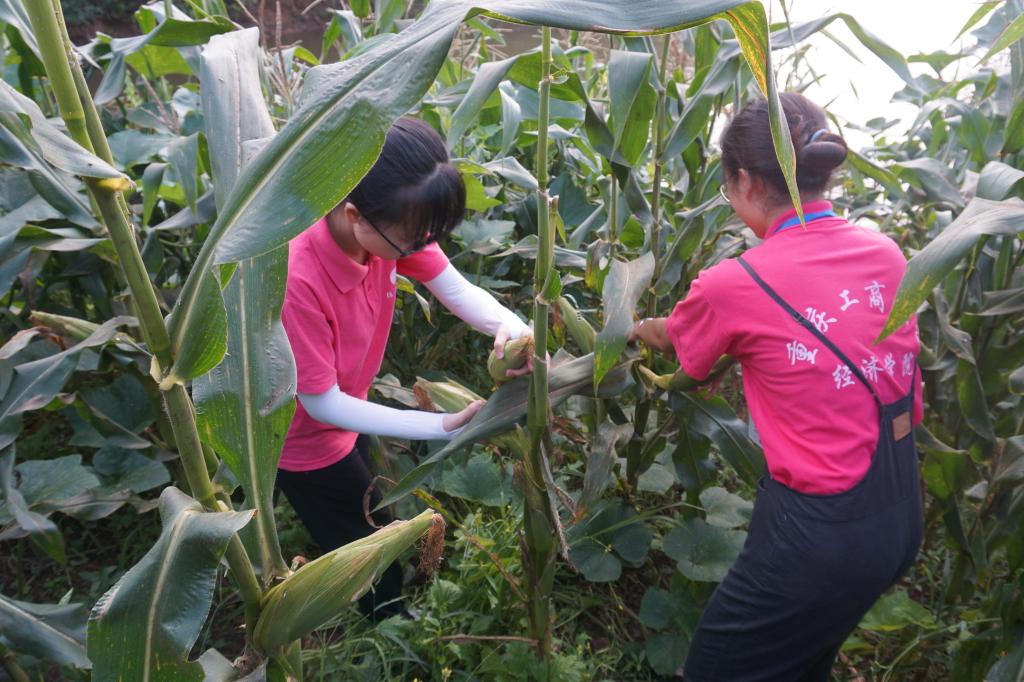 据十四五规划和2035年远景目标建议,优先发展农业农村,全面推进乡村振兴势在必行。实践团成员在农户们的带领下走进田间地头,学习劳作技能,掰玉米、收茄子、种生姜。学习农产品从播种、收获到销售的整个过程,了解当下农村年轻劳动力缺乏和农产品销售等问题。在劳动中围绕环境污染、、绿色农业、垃圾分类等内容进行交流,结合实际情况对农户们普及了环保知识,助力生态文明,建设美丽乡村。尽管田间泥水坑坑洼洼,实践团成员个个兴致勃勃,互相协作,一派忙碌的景象。农户们说到,没有想到同学们不仅有丰富的知识,干起农活来也是不错的。