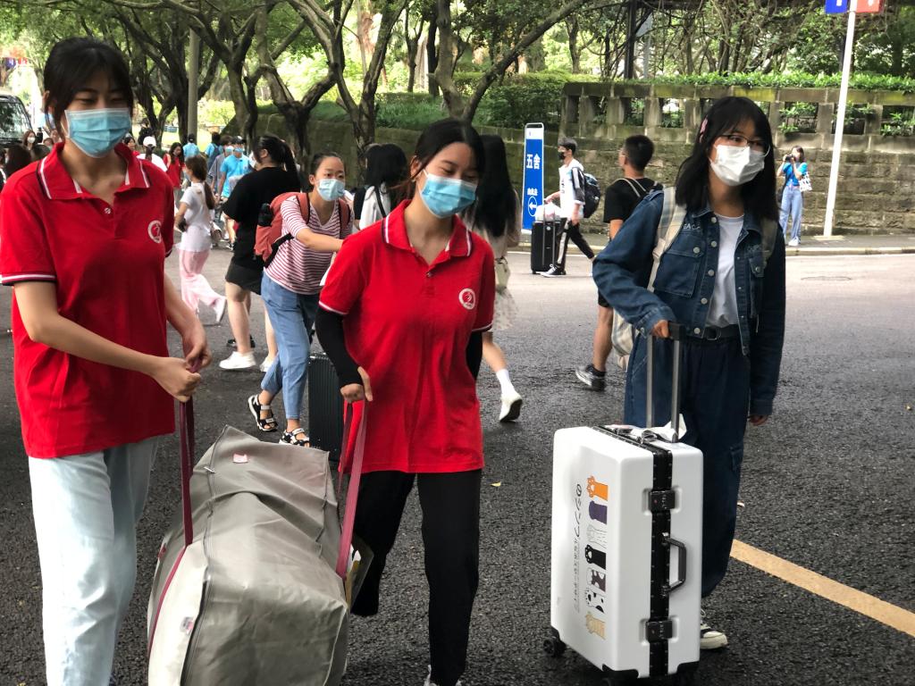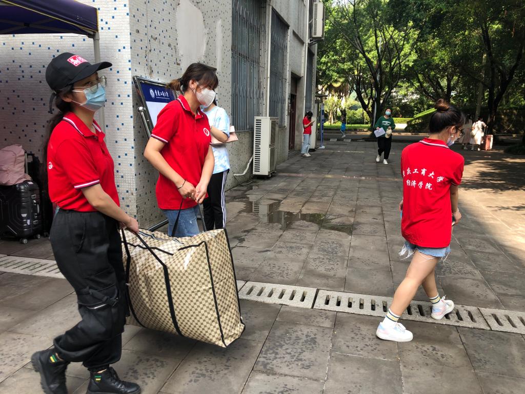 太阳成集团tyc539参加本次迎新的志愿者为40人,分别来自大二、大三年级。早上六点,着红色院服的太阳成集团tyc539志愿者们陆续从南岸校区出发前往江北校区新生接待处,大家完成签到、明确工作任务后,分头前往各自工作岗位投入了紧张繁忙地迎新接待准备工作。早上七点便陆续有提着行李的新生前来报到,一张张崭新的面孔为清晨的校园注入了新鲜活力。在校门口,志愿者们主动从家长手中接过新生的行李,带领新生有条不紊地去篮球场对应帐篷处领取报到单、去核算采样点做核酸、办理寝室入住手续等相关入学工作。放眼望去,校门口、核酸检测处、宿舍楼、校园道路上,到处都是志愿者们留下的红色身影,他们精神饱满,积极耐心,不辞辛苦,怀有满腔热情,热心为同学们服务。另外,为了让新生们尽快熟悉新环境,融入大学生活,作为学长、学姐的他们也细心地向新生们介绍学校各楼层分布,为新生指路,告知生活注意事项,为学弟、学妹们将来的生活提出了切身实际的建议,一路谈笑风生。炎炎烈日,难敌新一届求学渴望;默默奉献,方显志愿者无私真诚。
