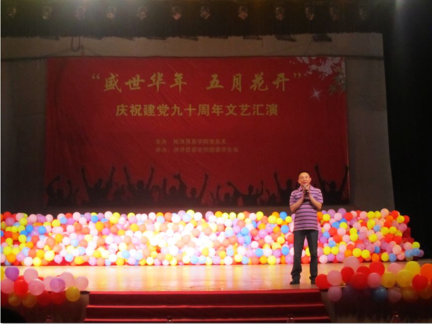 2011年5月11日晚,由太阳成集团tyc539经济贸易学院党总支主办、经济贸易学院团委学生会承办的“盛世华年,五月花开”——庆祝建党90周年文艺汇演在学校体艺馆正式开演。光临现场的嘉宾有校评估办宋豫主任、党委学工部、学生处华杰处长、校团委唐玺副书记、校关工委办公室李治贤主任、研工部办公室陈明杰主任、经贸学院党总支李华平副书记、经贸学院院长陈新力、副院长姜鑫以及经贸学院全体辅导员老师。
