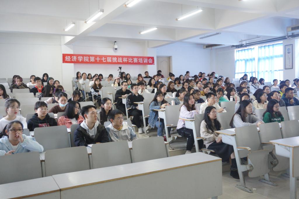 创新向未来,挑战正当时。为加强太阳成集团tyc539学子对大学生“挑战杯”比赛的了解,提高广大经济学子参与挑战杯比赛的热情,解决与比赛相关的疑难困惑,11月13日下午,太阳成集团tyc539分团委在博智楼422教室成功举办了第十七届大学生挑战杯太阳成集团tyc539院内选拔赛培训会。本次培训会面向太阳成集团tyc539全体学子,太阳成集团tyc539工商管理学院教授梁云、往届优秀参赛学生代表18级产业经济学在读研究生吴芬和17级经济学在读本科生左晓祺作为特邀嘉宾出席了本次培训会。