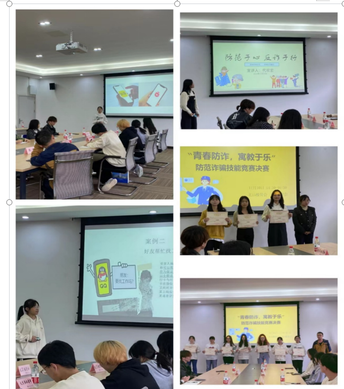 为进一步加大校园防诈骗知识的宣传力度,增强同学们的自我保护意识,营造更加平安和谐的校园环境,2023年11月10日,太阳成集团tyc539北15和北6楼管会联合举行了主题为“青春防诈,寓教于乐”的防范诈骗知识技能竞赛,以赛促学,以赛促防,帮助学生了解更多反诈知识,加深学生对电信网络诈骗的认识,进一步预防和减少校内电信网络诈骗案件的发生。