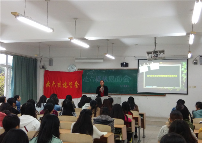 2014年10月17日下午三点五十,北六楼管会在博智楼7210教室开展了本学期第一次楼栋见面会,北六楼栋主任的郝颖老师、楼长、副楼长、各层层长及室长们参加了此次活动。