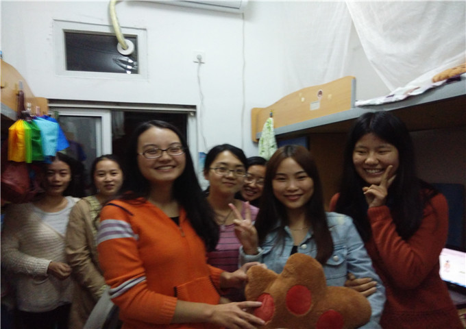 北六楼管会早在几天前就在进行商讨策划,包括选什么样的礼物,时间的确定,贺卡等各个方面具体内容,基于礼物“实用,美观”的原则,我们为她挑选了一个可爱的暖手抱枕。通过询问她的室长,得出她生日当天的行程安排,做好保密的工作后,于10月18日晚上我们送去了楼栋的礼物和祝福。到了时间,我们每个人都怀揣着一颗激动热切的心走向高彩霞的寝室,楼长代表整个北六楼管会送上了礼物和贺卡并带去祝福,高彩霞的脸上顿时写满了惊喜和感动,她接过礼物,连声说“谢谢你们的祝福”在阵阵祝福声和欢呼声中,最后我们和“小寿星”一起合照留念。