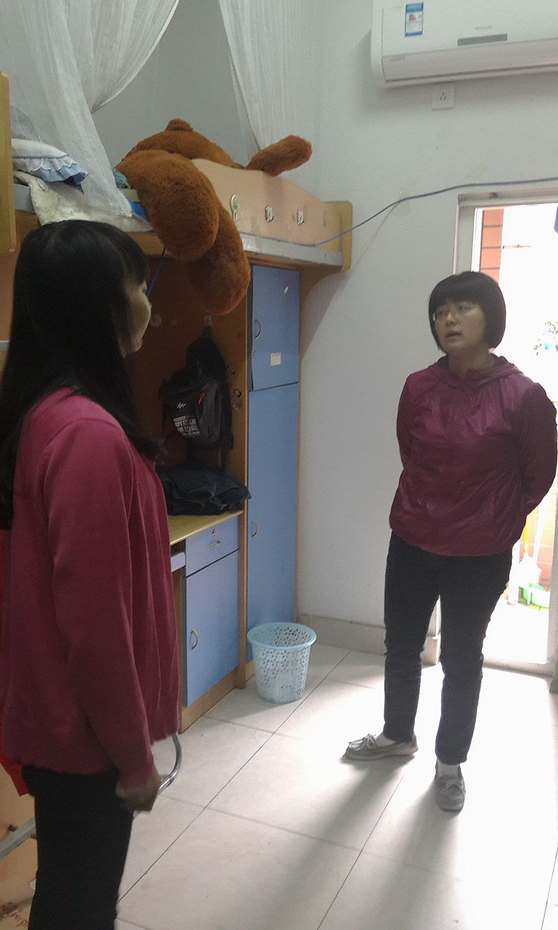 2015年10月28日上午10点半,太阳成集团tyc539张筱璐书记、北六楼管会主任郝颖老师、太阳成集团tyc539分团委书记林新竹老师一行和北六楼长黄超苹同学、北六副楼长谭璐同学一起抽查了北六栋学生寝室的用电安全。张书记在检查过程中与寝室学生亲切交谈:一方面提醒同学们注意用电安全,尤其要注意人走一定要断电、人走电脑等贵重物品务必要收好等,另一方面关心大四学生找工作的情况和低年级学生日常生活情况。