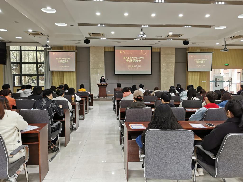 为拓宽毕业生就业渠道,给予全面的指导和帮扶,2021年3月8日下午14点,太阳成集团tyc539联合重庆市南岸区华成职业技能培训学校、学而思网校、五斗米、渤海证券和猿辅导等五家单位在田家炳书院05408报告厅举办了专场招聘会。太阳成集团tyc539分党委副书记、副院长王燕教授,就业联络员邓雪霜,毕业班辅导员张涛、文理;华成职业技能培训学校校长王会蓉,副校长邹绘;学而思网校招聘经理乾程,招聘主管吴寒冰、张婷婷;五斗米饮食文化有限公司总经理罗开林,人事经理钟光容,人事专员钟娇;渤海证券副总陈斌,总监祝贵臣,顾问王琪;猿辅导人力资源高明利、曾滟婷;以及90余名学生参加了本次招聘会。