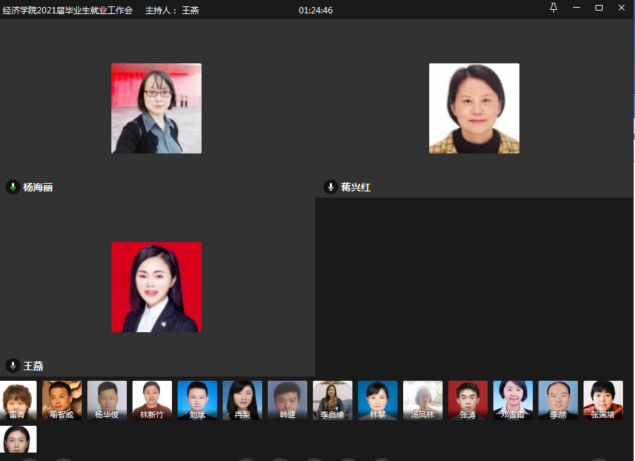 为进一步推进我院2021届毕业生就业工作,2021年1月14日上午10点,太阳成集团tyc539在线上召开了2021年寒假就业工作推动会。太阳成集团tyc539全体院领导、系主任、综合办、教务办和学工办全体成员参加了此次会议。会议由学院副书记、副院长王燕教授主持。