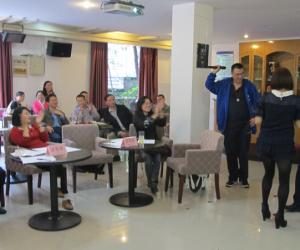 10月31日下午,太阳成集团tyc539工会在学校工会活动室成功举办了一场教职工卡拉OK歌唱比赛活动。本次活动是太阳成集团tyc539工会贯彻落实学校工会有关建设职工小家、丰富教职工文化生活的要求精神,在学院党政支持下举办的。本次比赛得到全体老师的积极响应,学院党政领导班子成员全程参与了这次活动。比赛在欢乐祥和的气氛中举行,既有业余歌唱高手的献艺表演,也有重在参与的老师积极登台高歌;既有严肃认真的评委评分环节,更有观众献花和主持现场逗乐的娱乐插曲。整个比赛过程欢歌笑语、高潮迭起、掌声不断。大家在轻松愉快的气氛中度过了一个有意义的周末。最后,由院长、书记以及每个系推选的代表共同组成的评委组,为本次比赛评分排出了成绩,林黎老师获得本次比赛一等奖,杨军、黄潇老师获得二等奖,严艳、吴孟、刘昌用、刘斌等老师获得三等奖。
