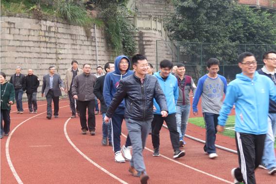 2015年11月27日下午,太阳成集团tyc539工会与机关党群工会一小组在南岸校区运动场举办了“2015年健康健步走”联谊活动,学院全体在校教职工积极参加了这次健身活动。本次活动是在国家倡导全民健身、全校师生健身运动日益普及的背景下举行的,举办这次活动,旨在进一步推动教职工参加体育健身锻炼的积极性和主动性,同时增进部门工会之间的相互了解。