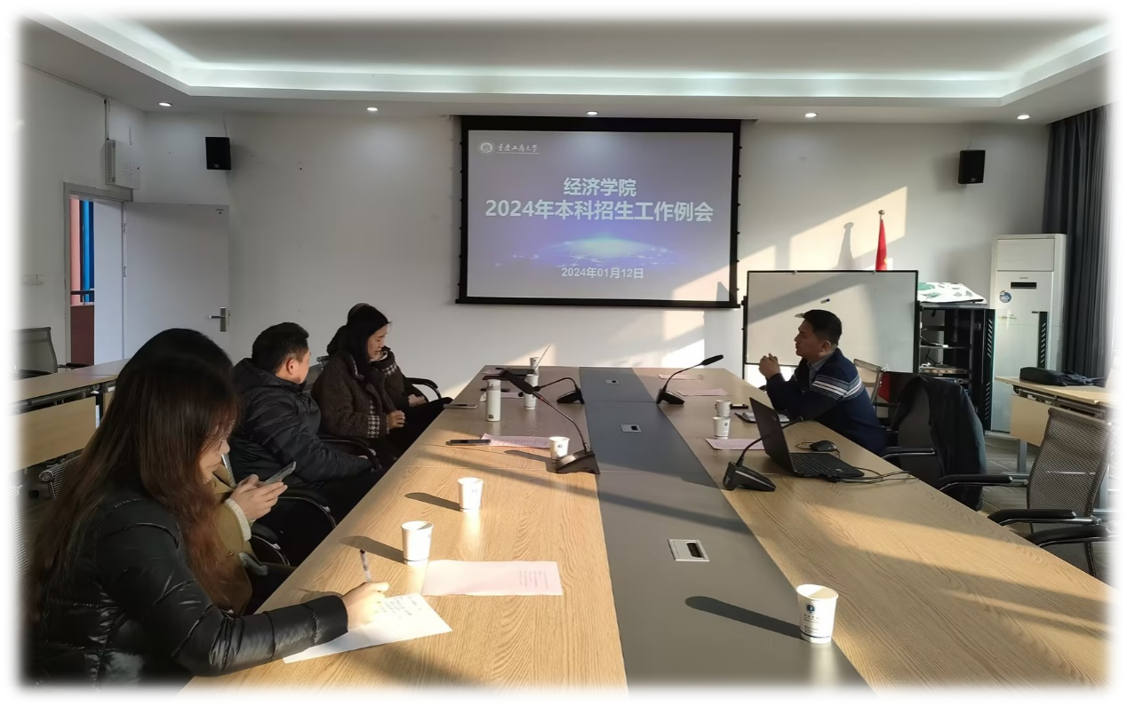 会上,尹元福副院长首先回顾了学院2023年的招生工作,其次传达了学校2024年本科招生工作会议的相关精神,并对经济学院2024年各专业招生工作做总体部署。随后,各系部主任和院督导就学院五个专业招生计划、实验班特色招生项目及数字经济新专业招生相关问题展开研讨;讨论涉及了专业介绍撰写、优秀校友材料收集、招生宣传资料更新以及招生宣传视频拍摄等工作。