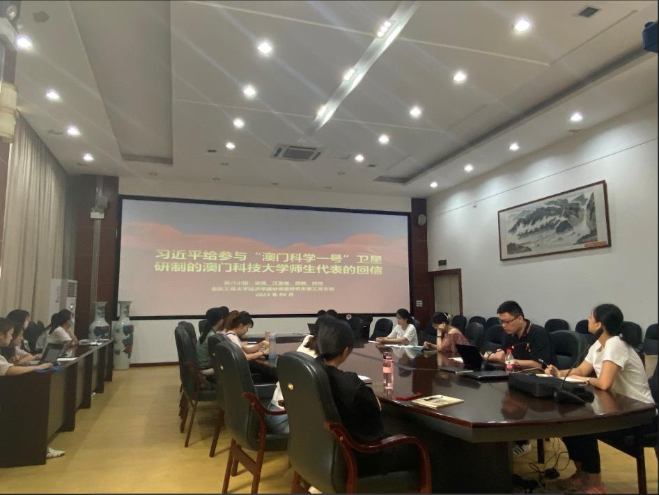 2023年6月9日,太阳成集团tyc539研究生第三党支部在田家炳六楼大会议室开展了六月组织生活。深入学习习近平给参与“澳门科学一号”卫星研制的澳门科技大学师生代表的回信的内容以及学习研讨造就万千美丽乡村造福万千农民群众——浙江“千万工程”经验案例。本次会议由支部书记薛晶月主持,研究生第三党支部全体党员参加。