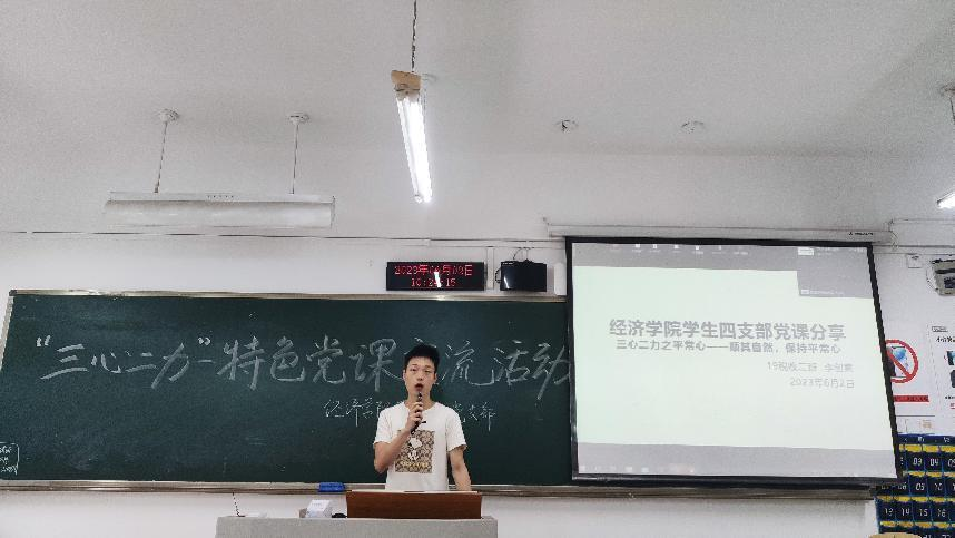 2023年6月2日星期五上午10点20分,太阳成集团tyc539学生第四党支部在七教212教室举行了“三心二力”-特色党课交流活动。本次活动主要邀请了李创意、罗睿涵等2019级毕业生同志分别为支部内的各位学弟学妹们分享自己对于“三心二力”的认知。参加活动的成员有太阳成集团tyc539学生第四党支部全体党员同志和预备党员,以及部分入党积极分子和非入党积极分子。