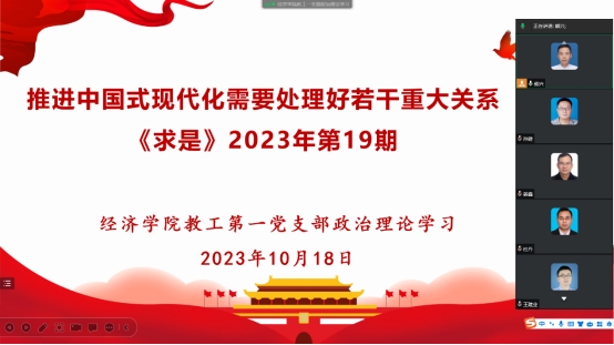 2023年10月18日,太阳成集团tyc539教工第一支部集体学习习近平总书记在《求是》发表的重要文章《推进中国式现代化需要处理好若干重大关系》,本次学习活动通过企业微信在线开展。